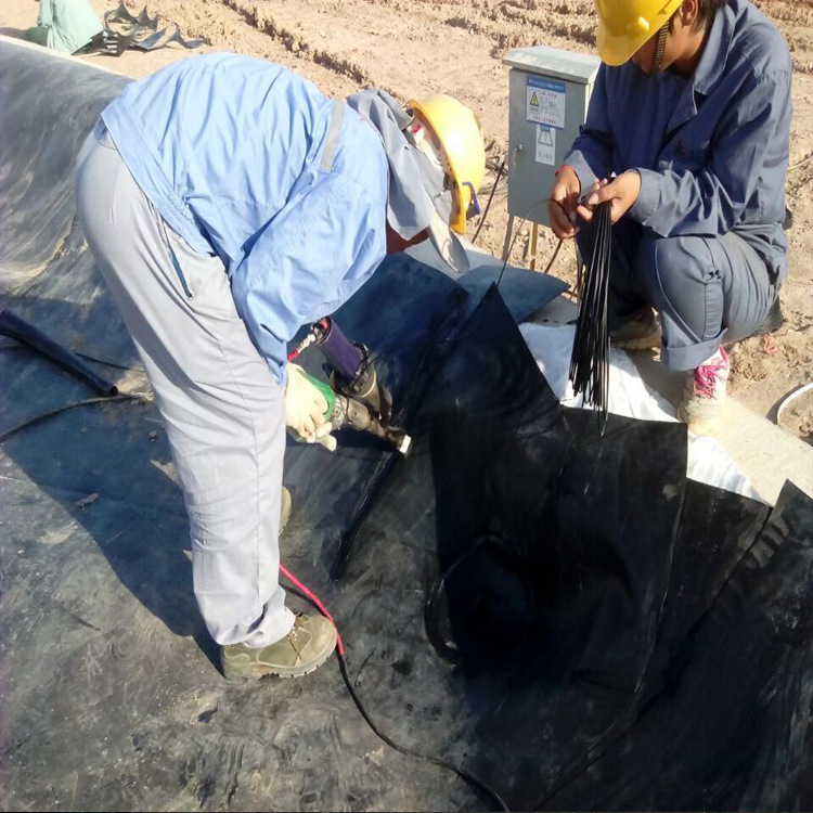 2、補(bǔ)丁應(yīng)由同樣的土工膜組成,并切成圓形或橢圓形,其大小應(yīng)超過缺陷邊緣至少15cm。